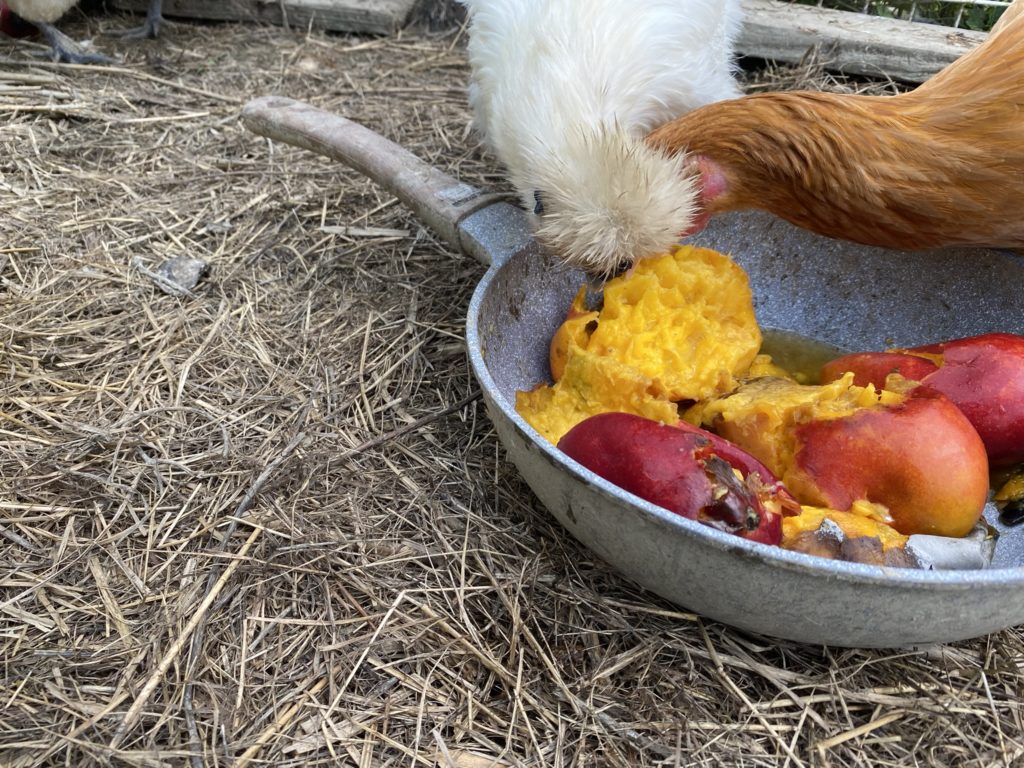 フスマ、大豆カス、おから、無農薬野菜、果実、野草などを組み合わせた自家製発酵飼料